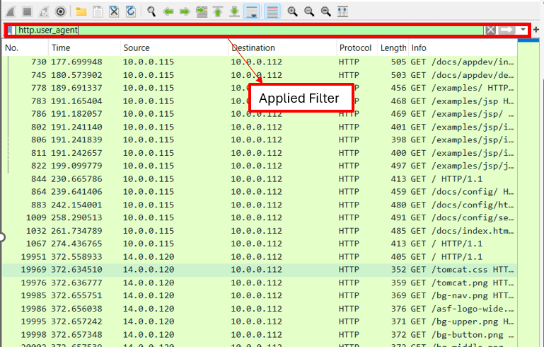 Another user by the username ODLAVIR conducted the challenge used filters to help them get the answers. Like in the case of finding the tool the attacker used to uncover directories on the server, they used the http.user_agent filter help narrow down where the answer may be.