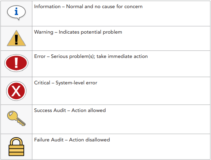 Event logs will display key information: